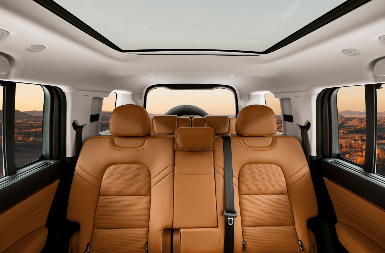 大有格局,百变空间更懂全家出行。 猛龙PLUS七座版延续方盒子硬朗美学,以“方圆之道,棱角之美”塑造沉稳可靠的气势感。车身尺寸方面,2850mm超长轴距配合超4.9米车长、超1.9米车高,铸就真·大块头的体量感。空间布局上,三排座椅可灵活收放,后两排纯平放倒后秒变双人大床,后备厢容积从59L可扩展至1549L,真正实现“N种躺平模式,从容装下三代同堂的出行所需与全家人的诗与远方。