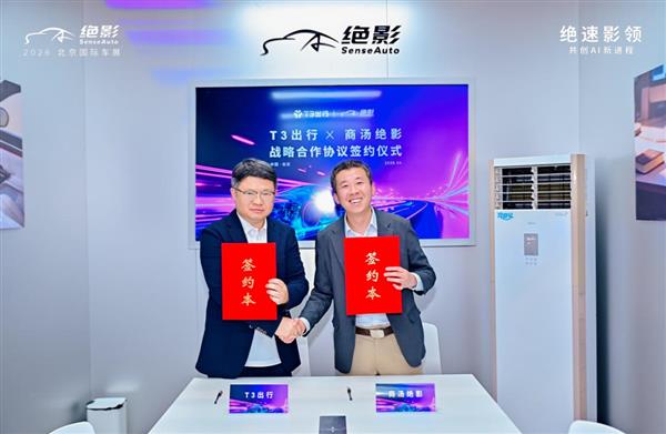 2026年4月24日,商汤绝影与 T3 出行在北京车展现场达成战略合作,双方将共同推进舱驾融合一体的智能驾驶解决方案落地,计划于年内全面开启 Robotaxi 试运营。
