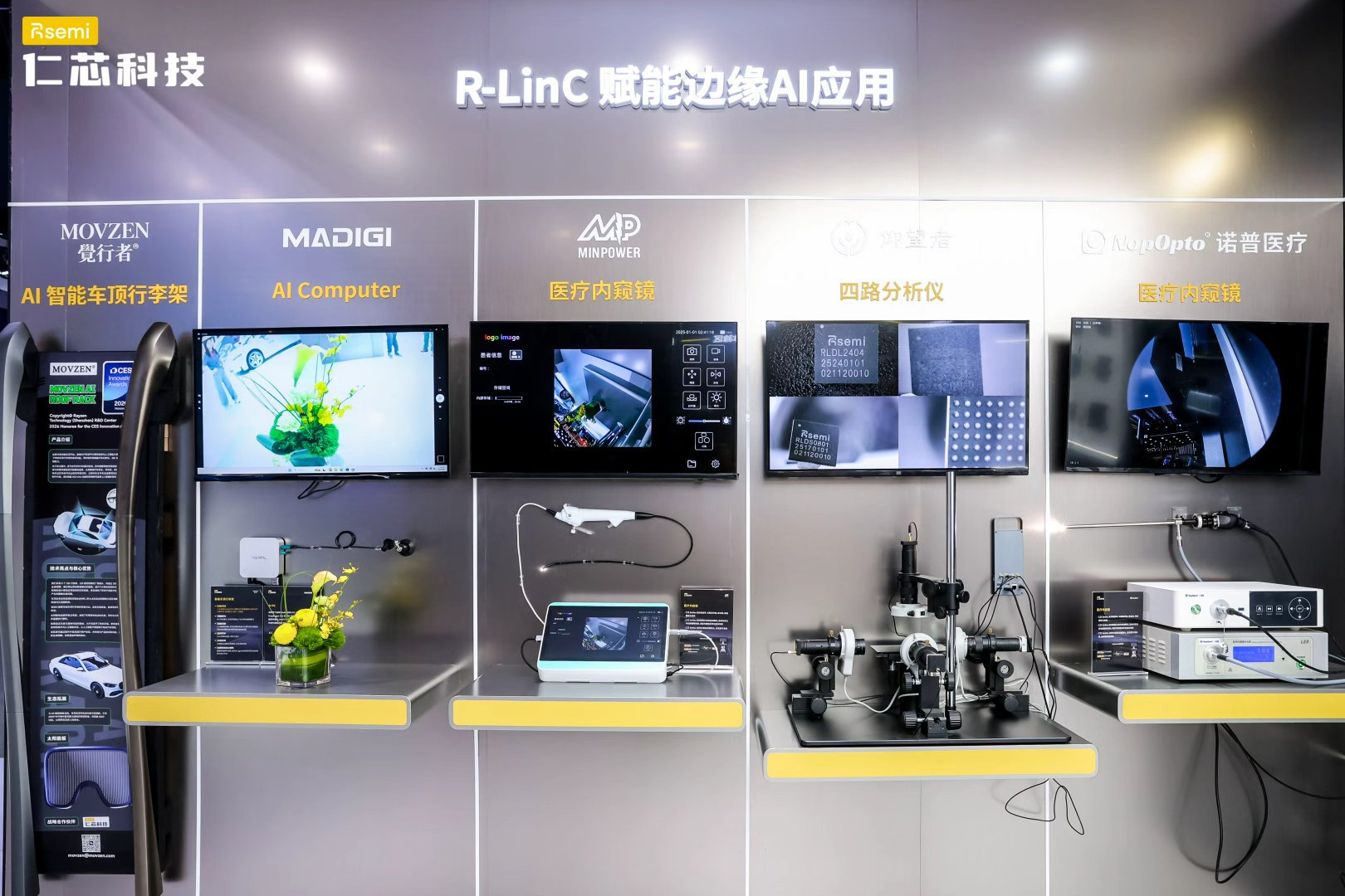 仁芯科技的诸多量产成果,在展台上得到了集中展示。从实车量产展示到性能体验互动,再到AI边缘计算的前沿布局,仁芯科技展台以多维度的呈现方式,向业界完整勾勒出从芯片设计到系统集成的全链条能力。其中,AI边缘应用展示区聚焦流媒体后视镜、医疗内窥镜等场景,进一步印证了高速互联技术在更广阔领域的应用潜力。