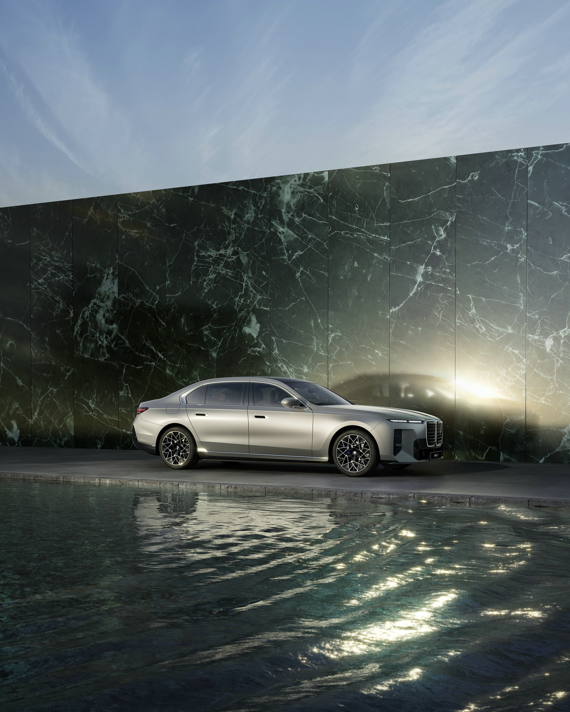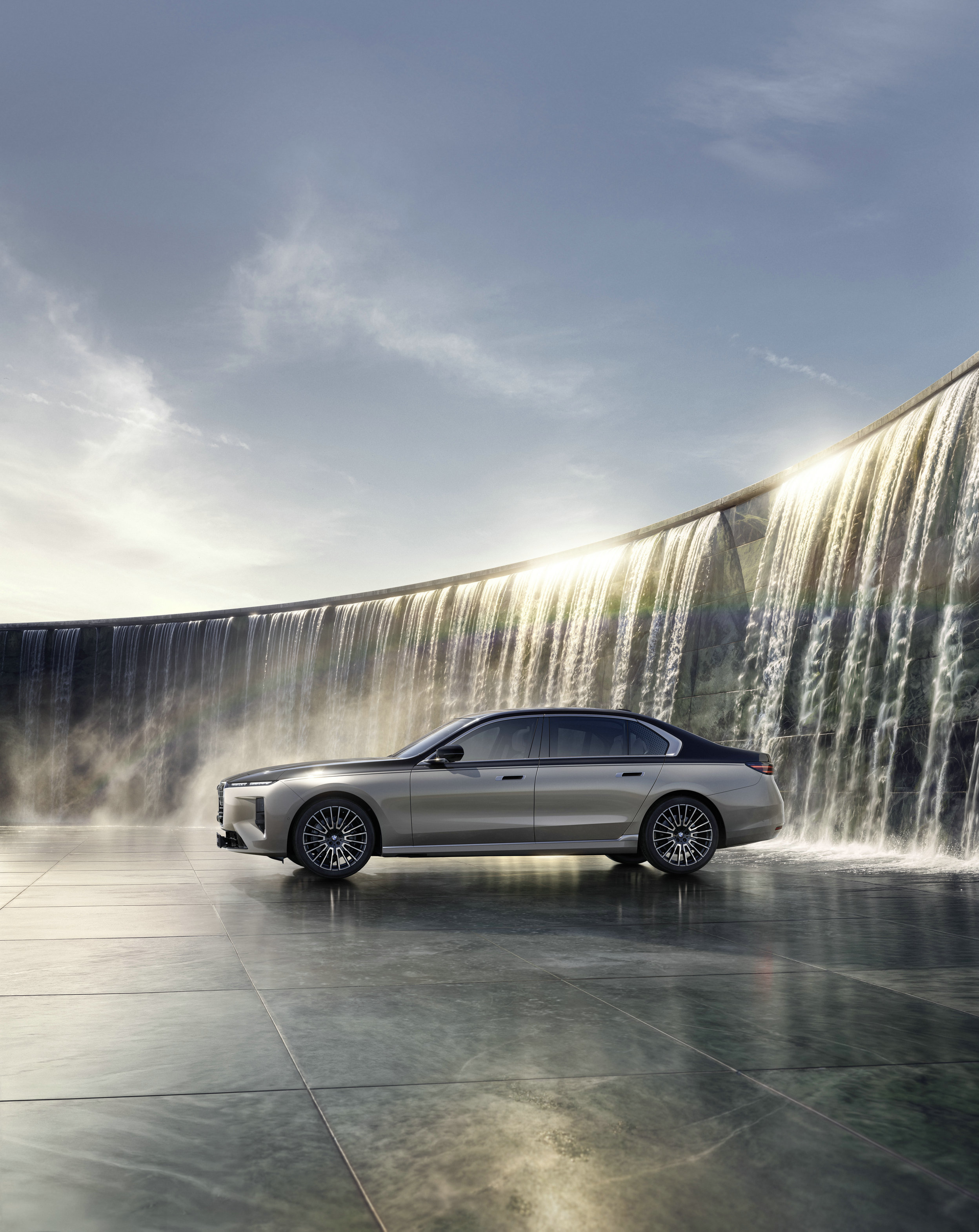 双色车漆,则是全新BMW 7系设计表达中的重要组成。双色设计以一条克制而精准的腰线划分车身,在清晰结构中建立起具有建筑感的比例关系。全新BMW 7系进一步引入“个性化定制双质感涂装”:上部高光、下部哑光,在同一车身上形成统一而克制的材质对话。两种截然不同的表面语言,在严格控制中达成一致,使整车呈现出更加内敛却更具深度的视觉层次。该涂装方案历经两年半研发,每一台车需超过4,500分钟的多道工序精细叠加,这不仅是工艺的突破,更是一种关于当代豪华的表达——理性、自信,并具备持久的审美力量。