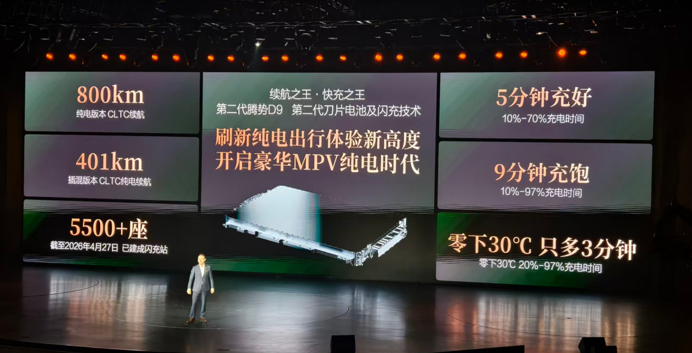 新车搭载第二代刀片电池、闪充技术、天神之眼5.0智驾系统、双阀云辇-C悬架及全域多屏智能座舱,依托比亚迪超5500座闪充站补能网络,全方位升级全场景出行体验,这也是腾势立足高端市场,从赛道开创者向行业引领者跨越的关键一步。