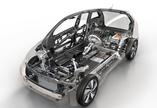 此外,i3的底盘也下了很大功夫。以前的EV基本都直接沿用现有汽油发动机车的底盘,只是把驱动系统改为电气系统。宝马i3在使大量使用碳纤维成为现实的同时,还开发了适合碳纤维车身的专用底盘。