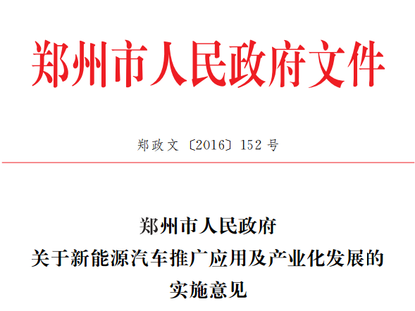 郑州市人民政府关于新能源汽车推广应用及产业发展的实施意见