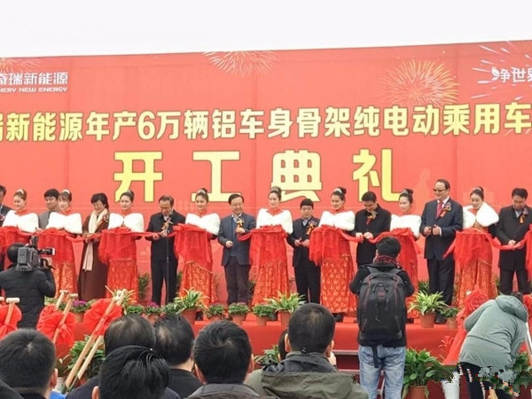 奇瑞新能源在芜湖市举行了年产6万辆铝合金骨架车身纯电动乘用车项目奠基仪式,一期工程预计今年9月建成,投产首款车型为小型纯电动SUV。