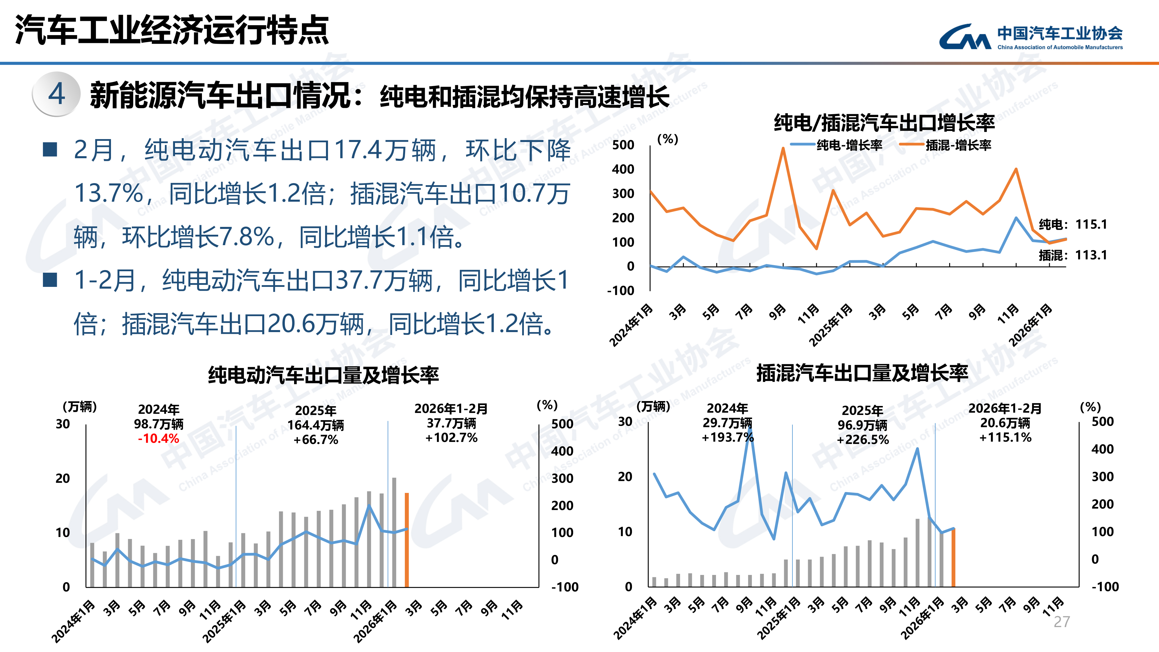 其中,2026年1-2月我国纯电动汽车出口37.7万辆,同比增长1倍;插混汽车出口20.6万辆,同比增长1.2倍。