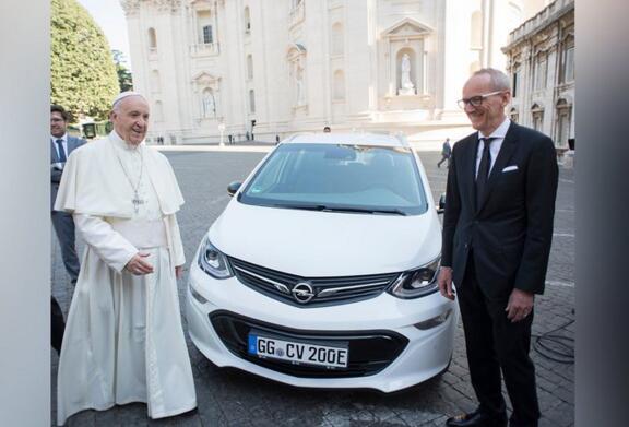 据澳大利亚汽车媒体6月2日报道,汽车公司欧宝向梵蒂冈天主教皇方济各(Pope Francis)赠送了一辆Ampera-e纯电动汽车,以帮助梵蒂冈城实现消除温室气体排放的目标。
