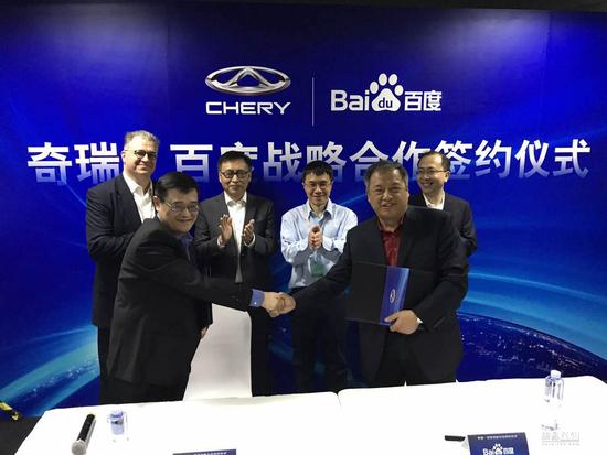 2017年4月19日,在第十七届上海国际汽车工业展览期间,奇瑞汽车与百度签署战略合作协议,双方将在车联网、高度自动驾驶、无人驾驶等方面展开全面合作,共同探索自动驾驶技术的成熟和商业化。奇瑞汽车总经理陈